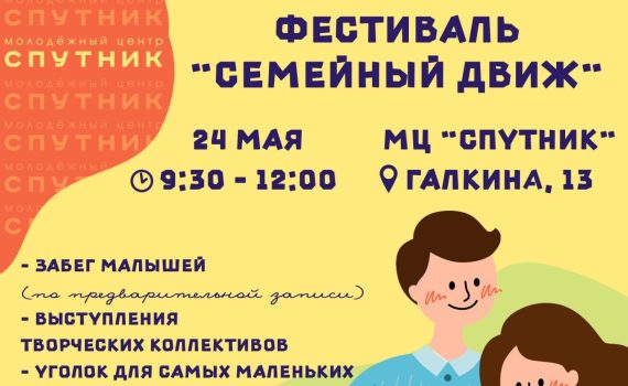 Городской фестиваль «Семейный движ», посвященный Международному дню семьи, состоится в Дзержинске 24 мая в молодежном центре «Спутник». И совсем не важно, какая будет погода, на фестивале «Семейный Движ» всегда солнечно! #СемейныйДвиж проходит не первый год. […]