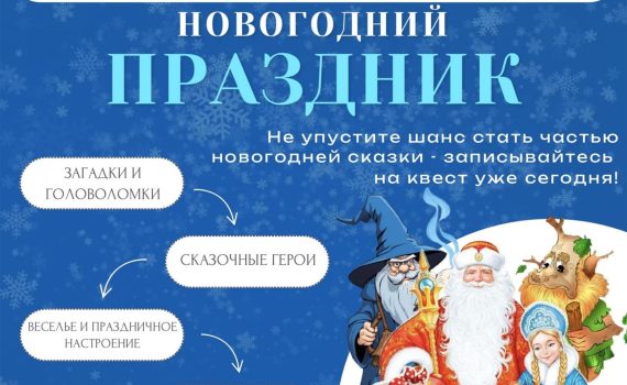 Приглашаем вас в волшебное приключение, где царит атмосфера праздника, а каждый шаг ведёт к новым открытиям! Что вас ждёт:● захватывающие загадки и головоломки;● встреча со сказочными героями;● море веселья и праздничного настроения;● шанс проявить смекалку […]