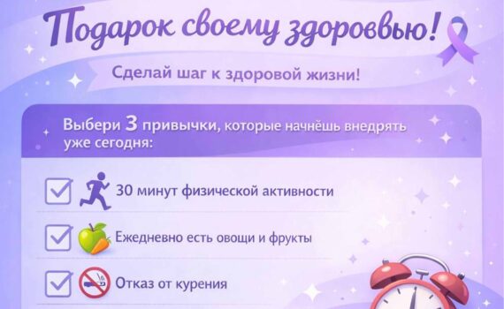 Сегодня — Международный день защиты от рака. Давайте сделаем шаг к своему здоровью вместе. Каждый день мы можем делать маленькие шаги, чтобы снизить риск рака. Сегодня предлагаем вам интерактивное задание: выберите три привычки в комментариях […]